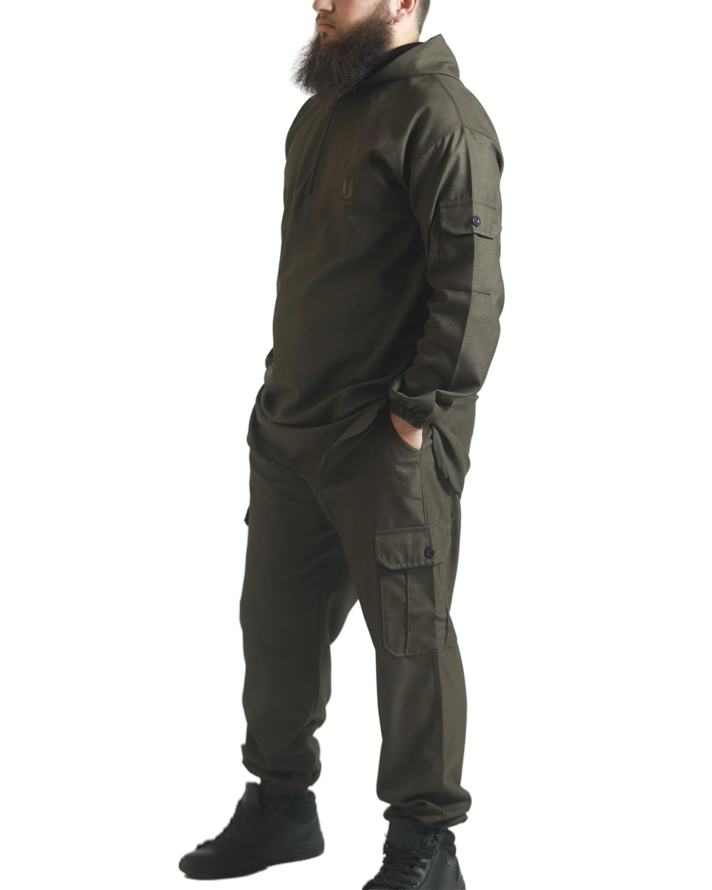 حافظ على راحتك وأناقتك مع هذا الطقم العصري المتطابق باللون الرمادي الداكن. يتميز التيشيرت بقصة مريحة وحافة سفلية دائرية عصرية، ويتناسق تماماً مع بنطال كابري فضفاض بقصّة منخفضة (سروال حريم). هذا الطقم، المزود بجيوب كارجو كبيرة، يجمع بين التصميم البسيط والطابع العملي لملابس الشارع (ستريت وير) لإطلالة كاجوال مميزة.عرض المزيد